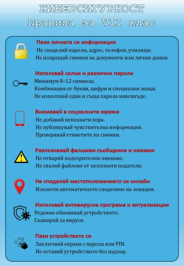 • Обяснявайте кои лични данни не трябва да се споделят