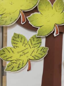 В третия етап учениците подредиха и оформиха листата на всеки клас в композиция под надслов „Дървото на надеждата“. Беше обособен и информационен кът, посветен на Деня.
