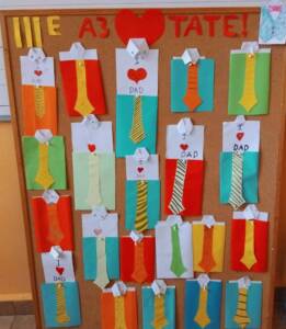 - клас – рисунки на тема “Обичам моя баща”, разказ “Как се чувствам с моя баща” и поздравителни картички за таткото.