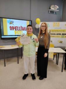 Мария Коцева от IV в клас е училищният шампион в състезанието. Тя спечели в оспорваната надпревара с Мартин Горчев от IV б клас, който остана на второ място. И двамата ученици ще продължат участието си в регионалните квалификации на състезанието „Spelling Bee JUNIOR“, които ще се проведат в периода 10-11 март, 2026г.